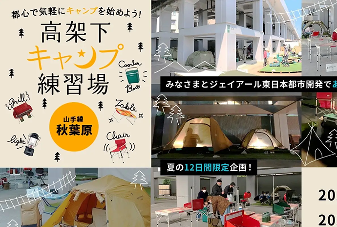 JR秋葉原の高架下にキャンプ練習場が出現⁉一般モニター様募集開始。事業化実現に向けた実証実験2022年8月13日~24日開催。